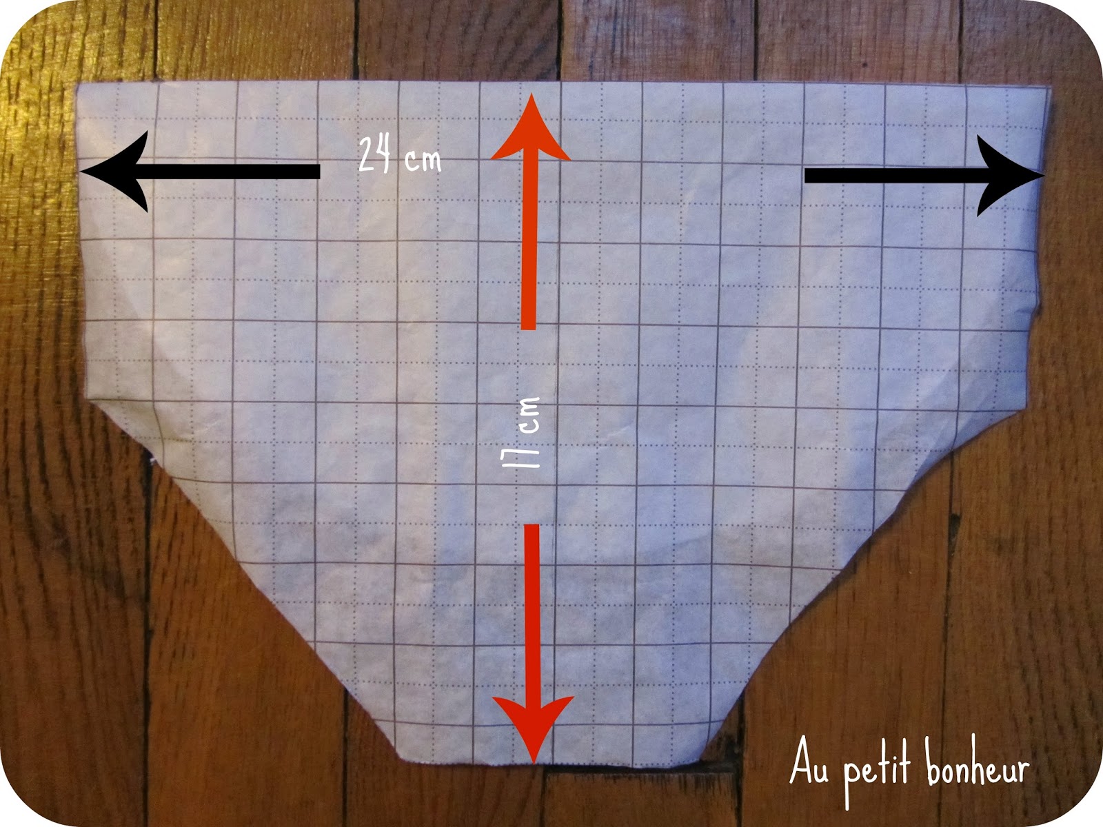 La poupée de ma fille, un bébé trésor de Corolle, est particulièrement large des hanches. J'avais fait un premier essai trop étroit. Donc ce tuto convient pour un cette poupée là. Je crois bien qu'elle fait 35 cm de haut.